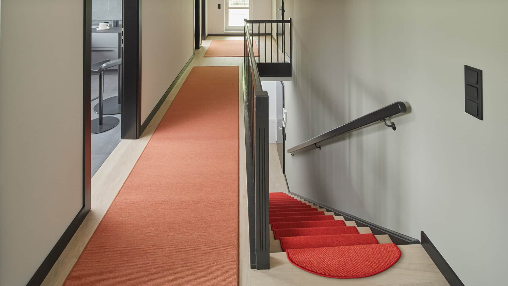 Stufenmatten aus Teppich zeichnen sich durch ihre weiche Oberfläche aus, sind trittsicher und vermindern das Risiko auszurutschen. Außerdem reduzieren sie den Trittschall und sind leicht zu reinigen.